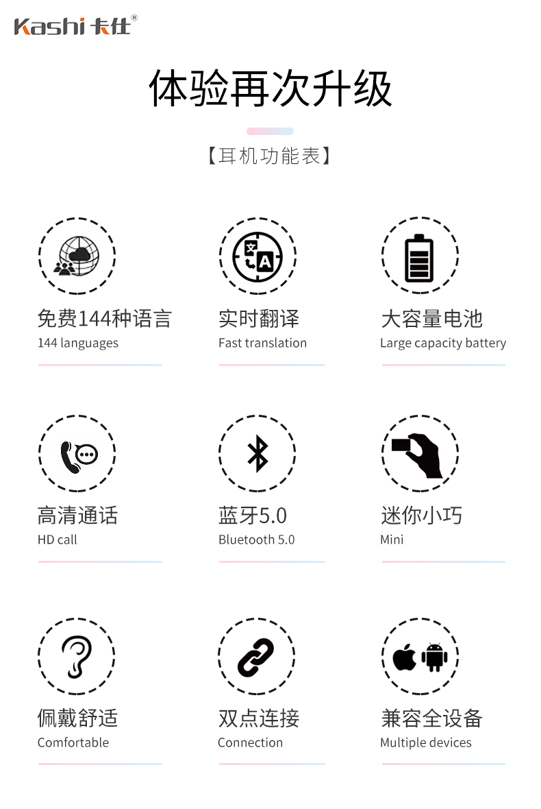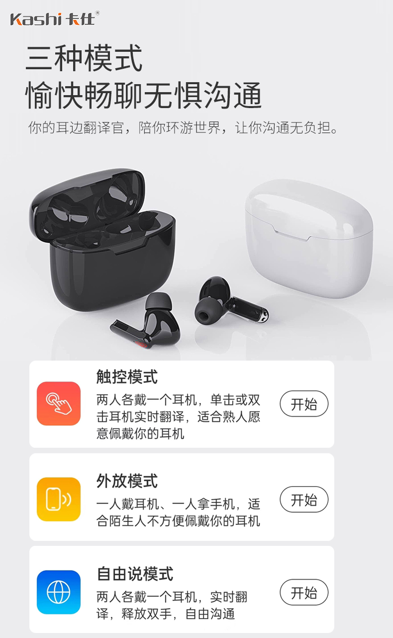 這款產(chǎn)品既可以用作翻譯耳機(jī),實(shí)現(xiàn)多種語言的實(shí)時(shí)翻譯,也可以用作智能藍(lán)牙耳機(jī),實(shí)現(xiàn)通話、收聽音樂等功能。