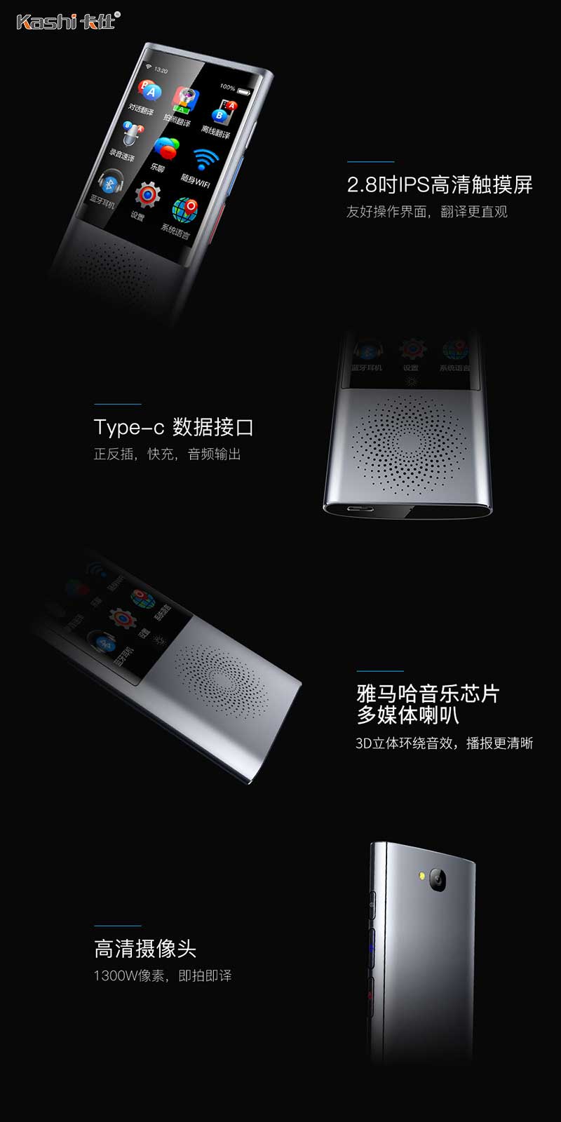 同步語(yǔ)音翻譯機(jī)T10,多國(guó)語(yǔ)言同步語(yǔ)音-卡仕